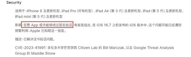 对于 iOS 17/18 Trollstore 巨魔更加无望,这个需要 CoreTrust 绕签名漏洞。在 iOS 17.0.1 系统起,并没有大神提交新的 CoreTrust 绕签名漏洞让苹果修补,则代表巨魔已经无望了,除非说未来系统中有发现。